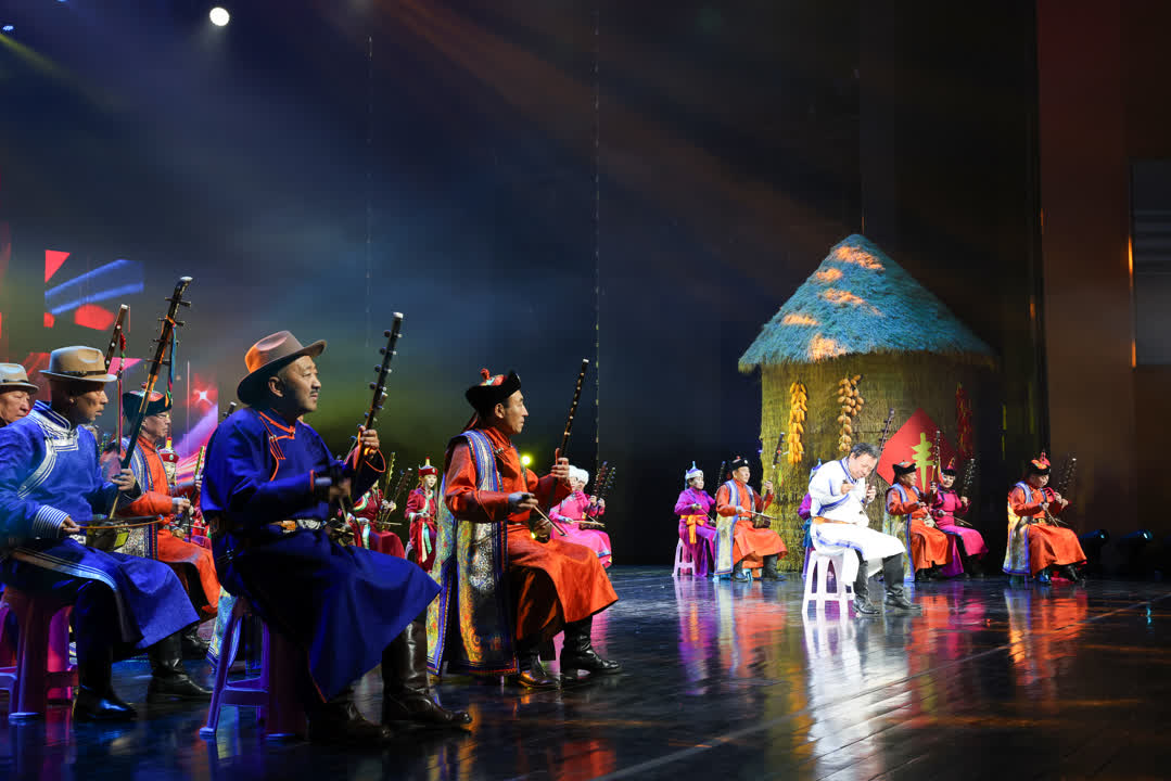“過(guò)了一村又一店”板塊聚焦“文化村長(zhǎng)”帶來(lái)的草根絕活,武術(shù)《燕青拳》、二人轉(zhuǎn)聯(lián)唱、說(shuō)唱《向天歌》等特色節(jié)目輪番登場(chǎng),精彩不斷。“非遺花開幸福村”板塊集中呈現(xiàn)文化傳承魅力,近80人的四胡齊奏《激情草原》氣勢(shì)恢宏,烏力格爾《草原之子》以蒙漢雙語(yǔ)創(chuàng)新演繹紅色故事,圍繞蒙古族刺繡創(chuàng)作的小品《錦繡前程》與歌曲《時(shí)光的針腳》,生動(dòng)展現(xiàn)了7項(xiàng)國(guó)家級(jí)非遺項(xiàng)目、79項(xiàng)自治區(qū)級(jí)非遺項(xiàng)目、258項(xiàng)盟級(jí)非遺項(xiàng)目的豐富內(nèi)涵。